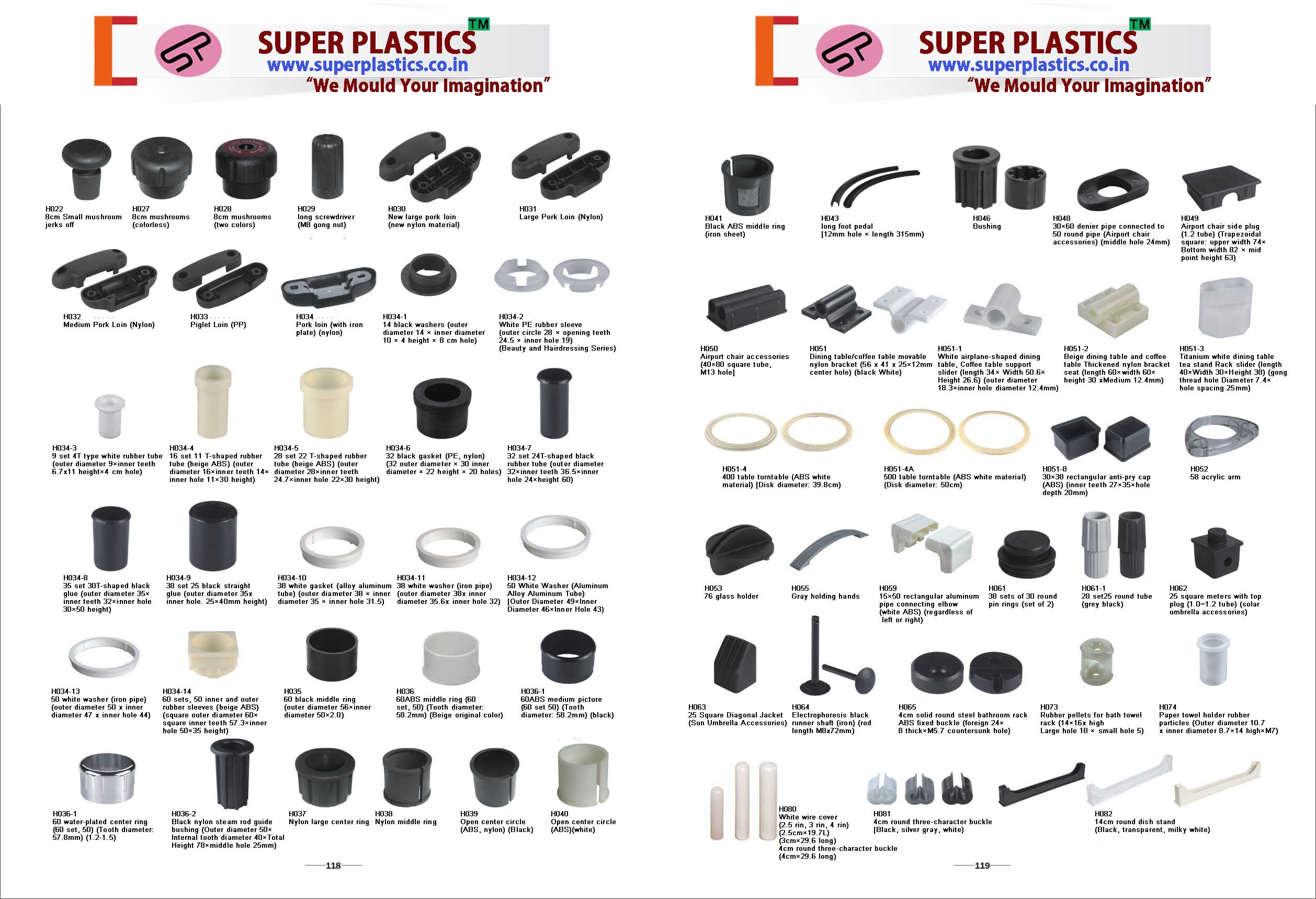 We are professional manufactures of a complete range of Plastics Bushes, Rubber bushes, washers, furniture Bushes, furniture spare, plastics machenical parts and soon on...